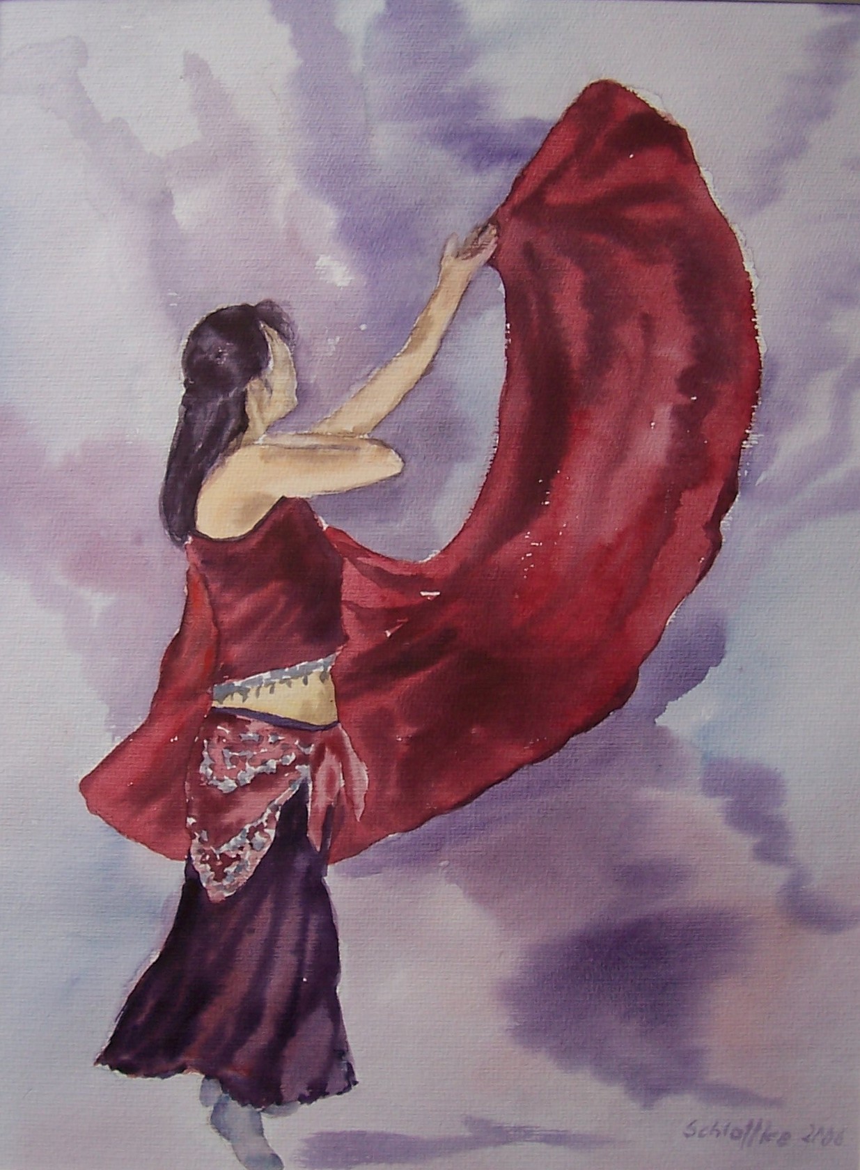 Tänzerin mit rotem Schleier, Aquarell
